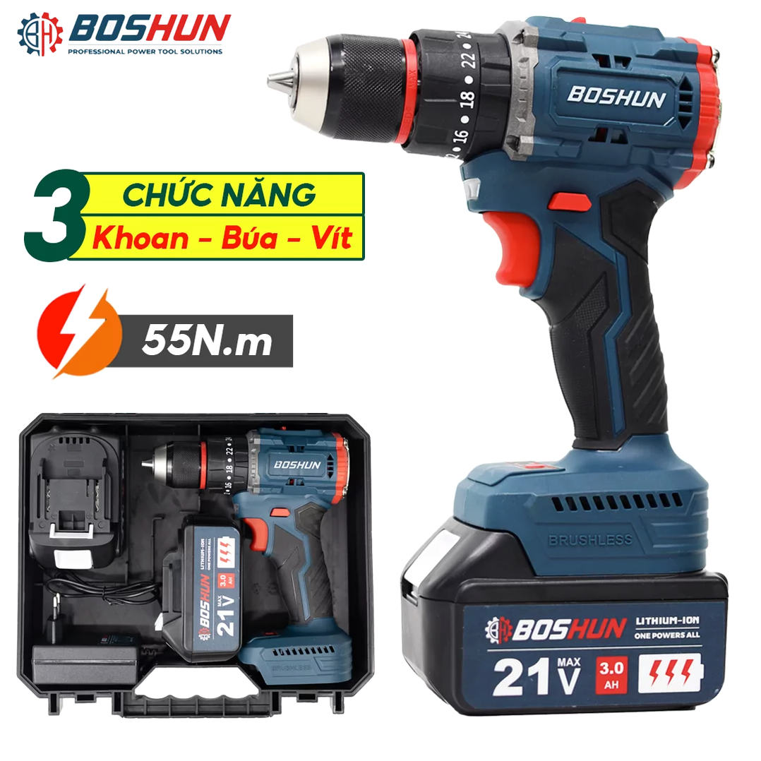 Máy khoan pin Boshun BS-ID2110BL (55N.m) - Đầu kẹp Autolock 10mm